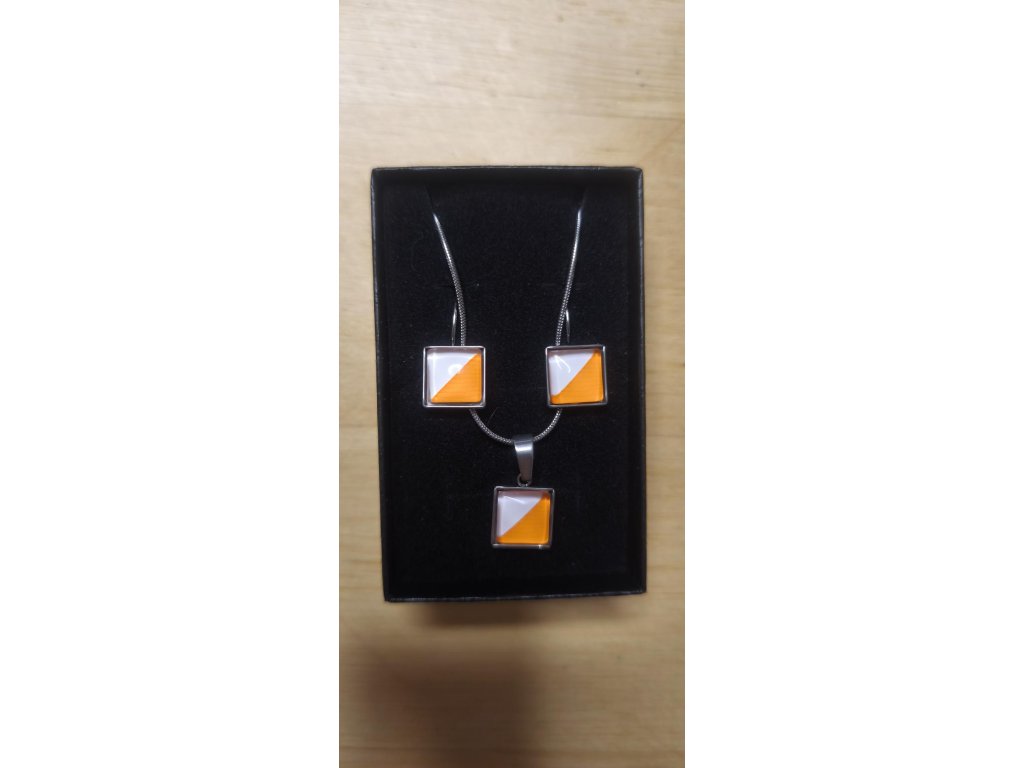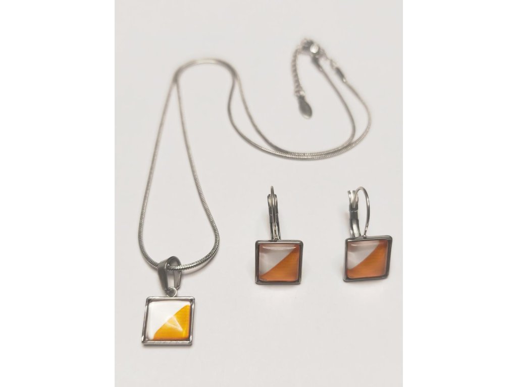 - lampionek 2 - náušnice pecky s čtvercovým lůžkem a rámečkem + řetízek