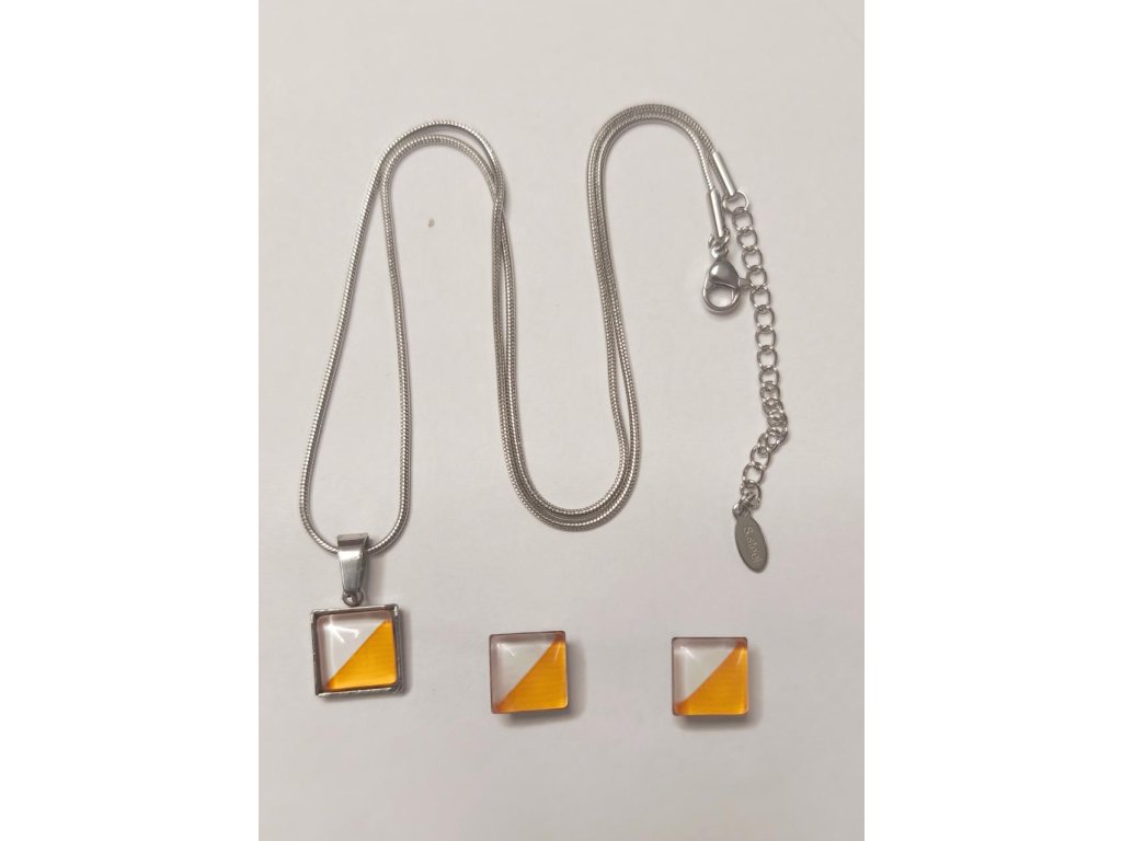 - lampionek 1 - náušnice pecky s čtvercovým lůžkem, bez rámečku + řetízek