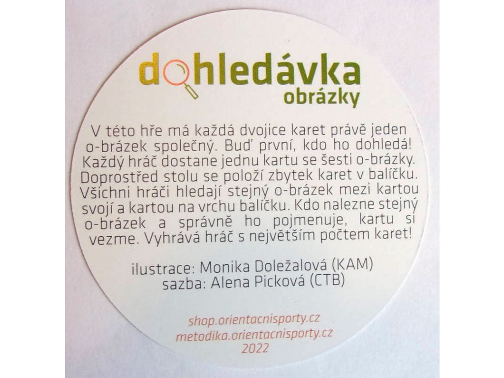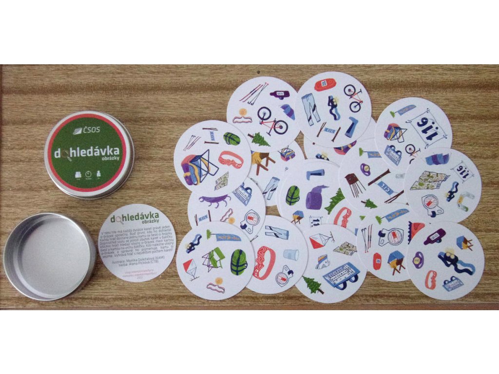 Nová verze karetní hry Dohledávka, další z postřehových her založených na principech hry Dobble. V této variantě hry má každá dvojice karet právě jeden společný o-brázek. Buďte první, kdo ho dohledá a správně pojmenuje! Hra je vhodná pro děti a žactvo. Obtížnější variantu s mapami naleznete zde.