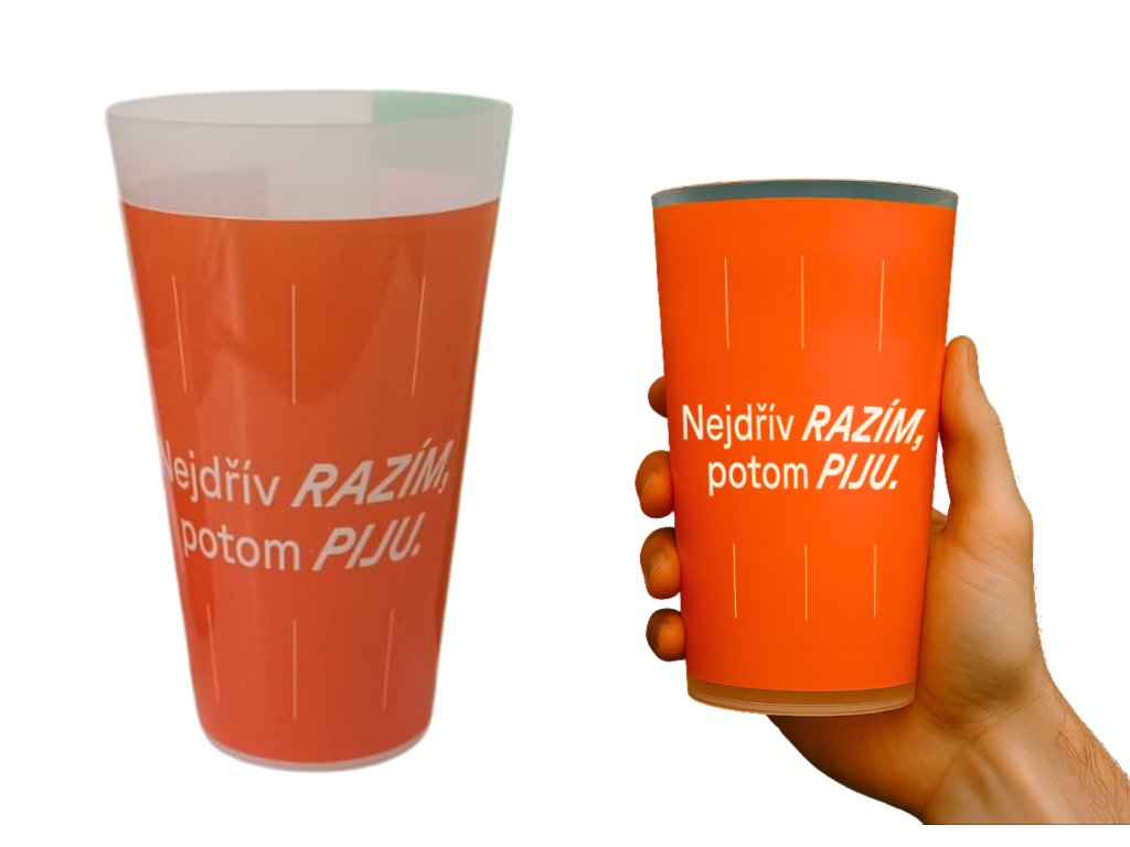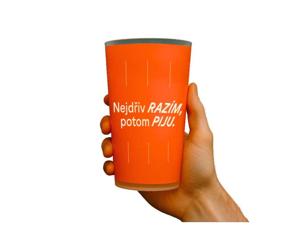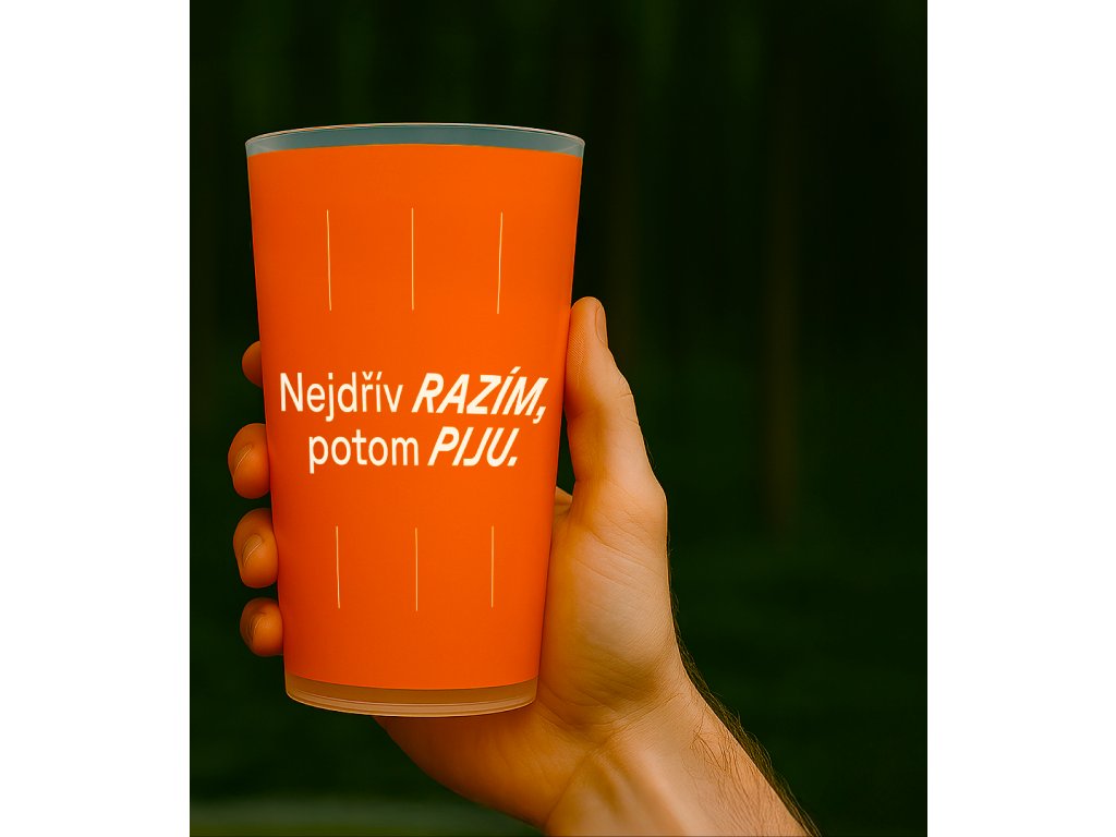 Oranžový půllitrový kelímek s risky i pro malý nápoj a vtipným orienťáckým sloganem je připravený zvládnout každou akci. Nerozbitný, omyvatelný a stohovatelný – ideální parťák na opakované použití. Stačí opláchnout nebo dát do myčky.