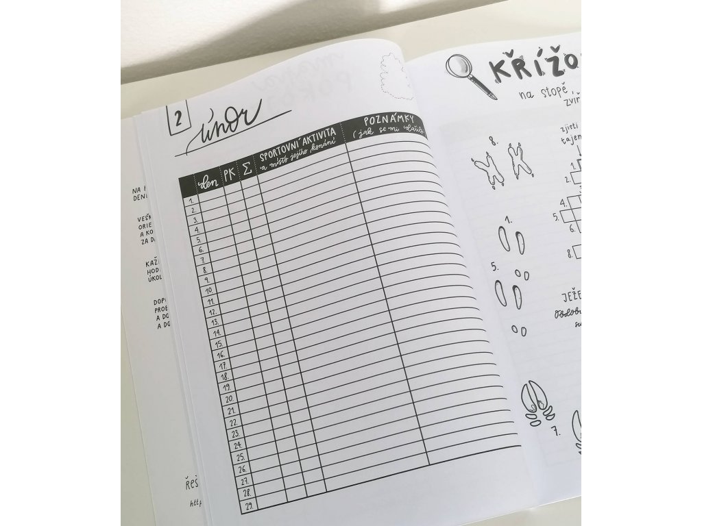 Můj první o-deník je pracovní sešit pro děti od 6 do 12 let, ve kterém si mohou evidovat své tréninkové aktivity a spočítat, kolik kontrol za rok našly. Na každý měsíc je nachystán úkol s orienťáckou tématikou. V deníku je i prostor pro turistická razítka a vstupenky z míst, která děti navštíví v rámci cestování na závody. Nechybí ani speciální samolepky za řádně vyplněné listy. Formát A4.