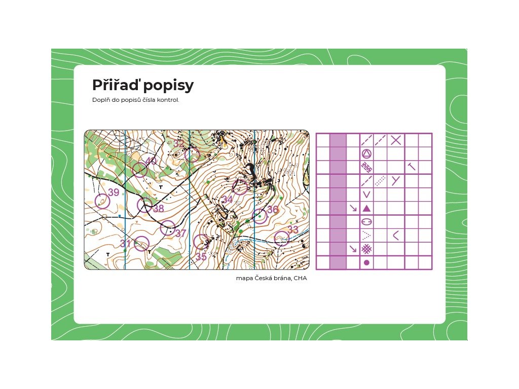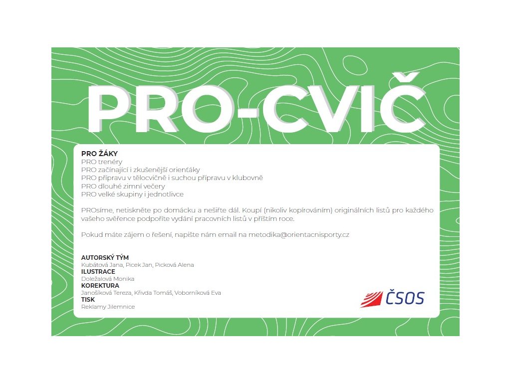 Metodická rada ČSOS přichází s novou pomůckou pro všechny trenéry, ale i další zájemce o “suchou přípravu” nejen v zimním období - na profesionální barevné tiskárně vytištěnou sérii pracovních listů k přímému použití. S nimi jednoduše procvičíte výškopis, piktogramy, mapové značky nebo světové strany, obsahují také nácvik čtení mapy nebo logické úlohy. K dispozici je sada 15 úloh, čímž je možné pokrýt každotýdenní teorii na celé zimní období.